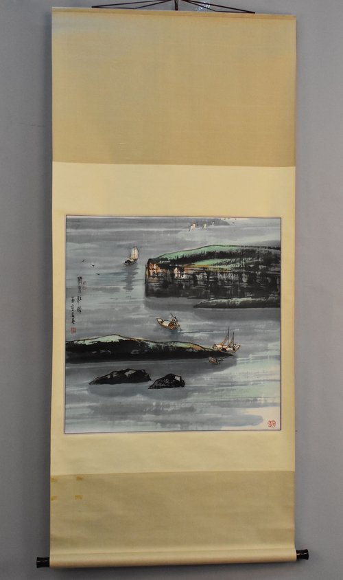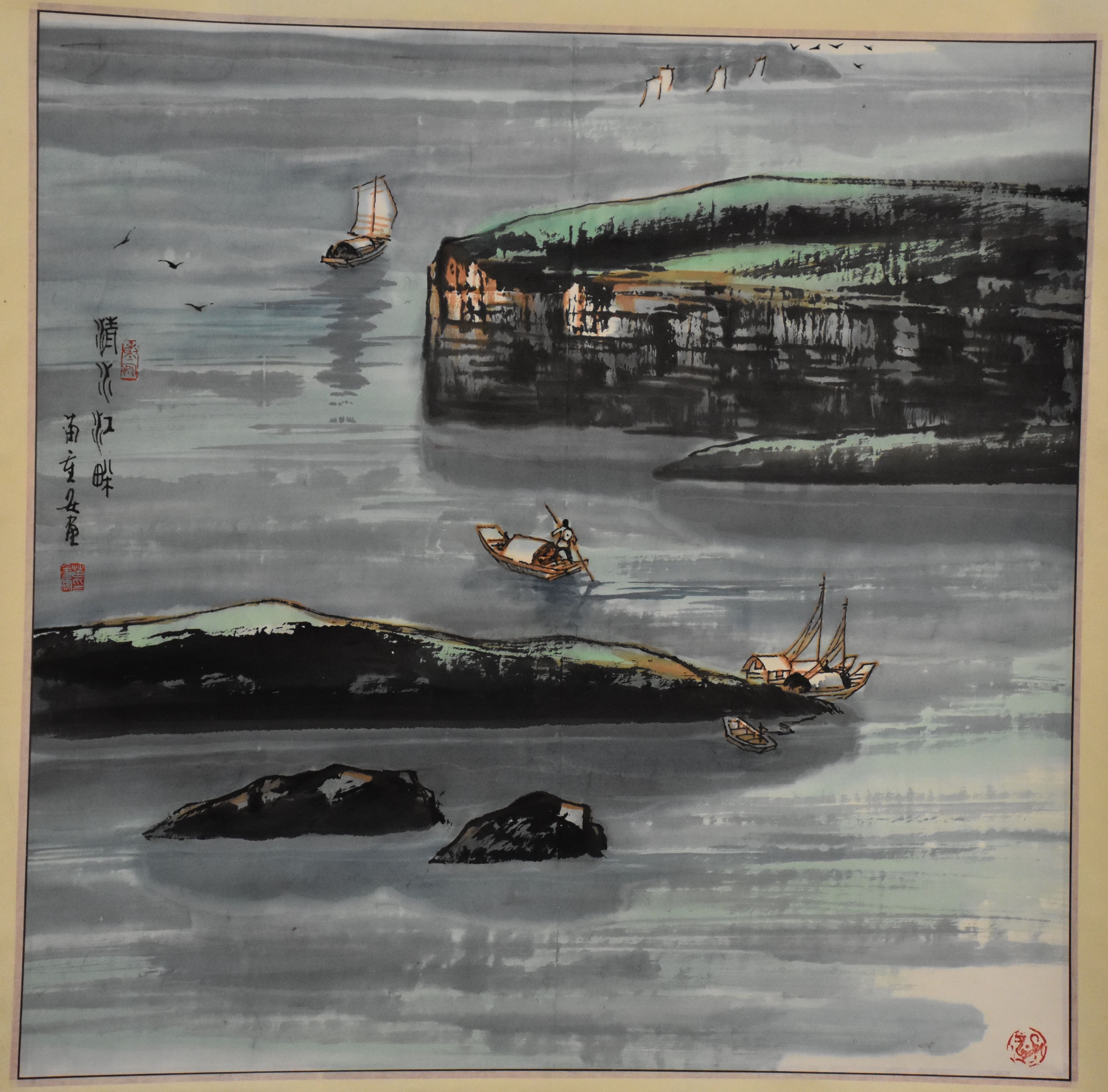 苗重安清水江畔山水画卷轴