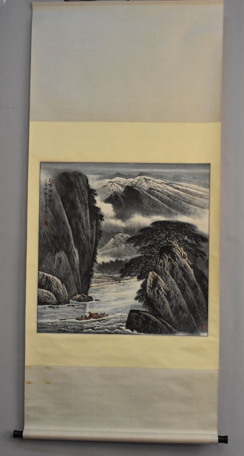 2005年岑学恭三峡放筏图卷轴