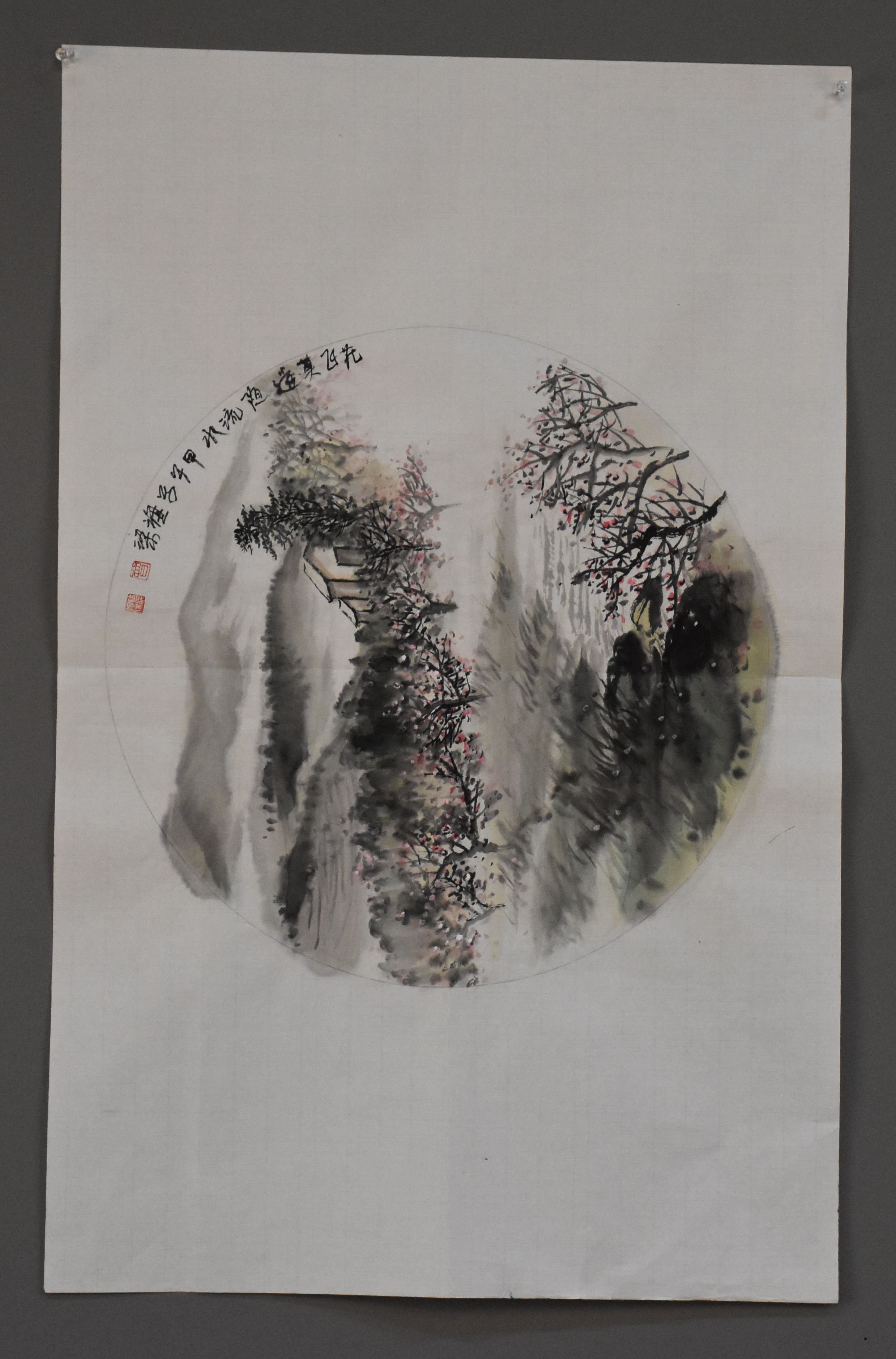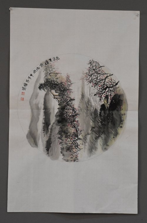 曾旗梁山水画中堂