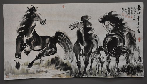 杜若飞养怡千里之马画横幅