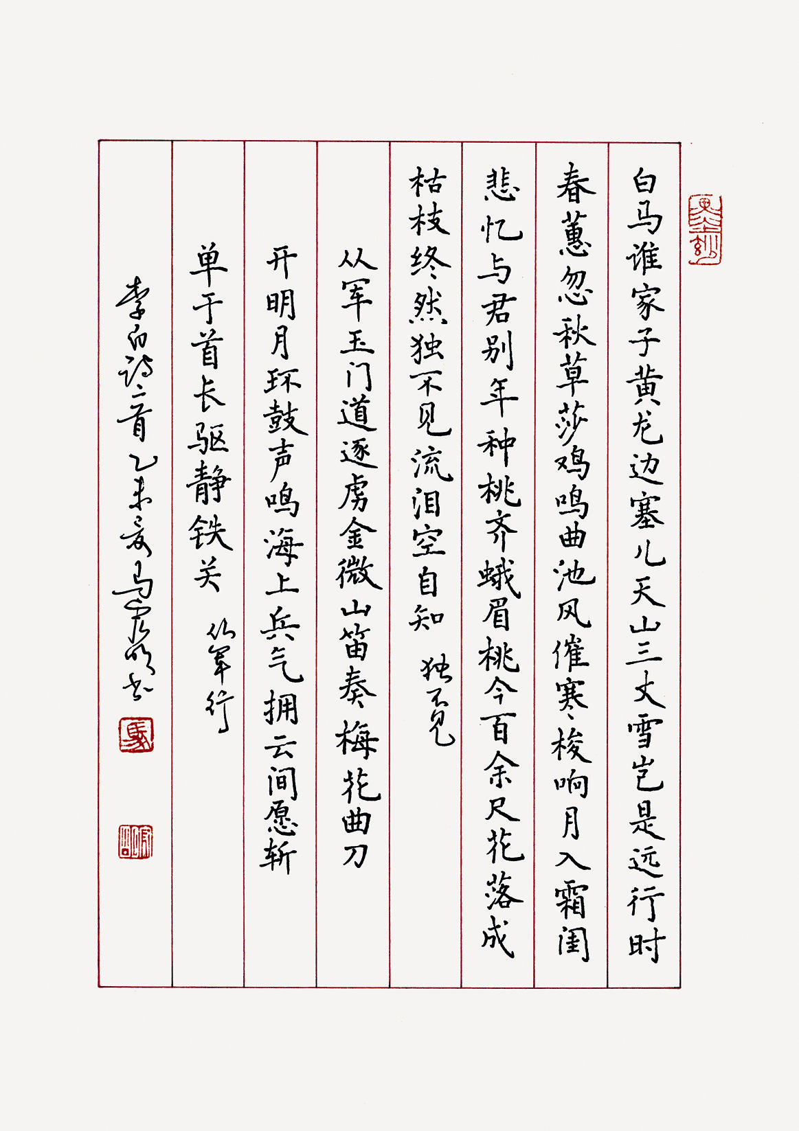 马宏明硬笔书李白诗