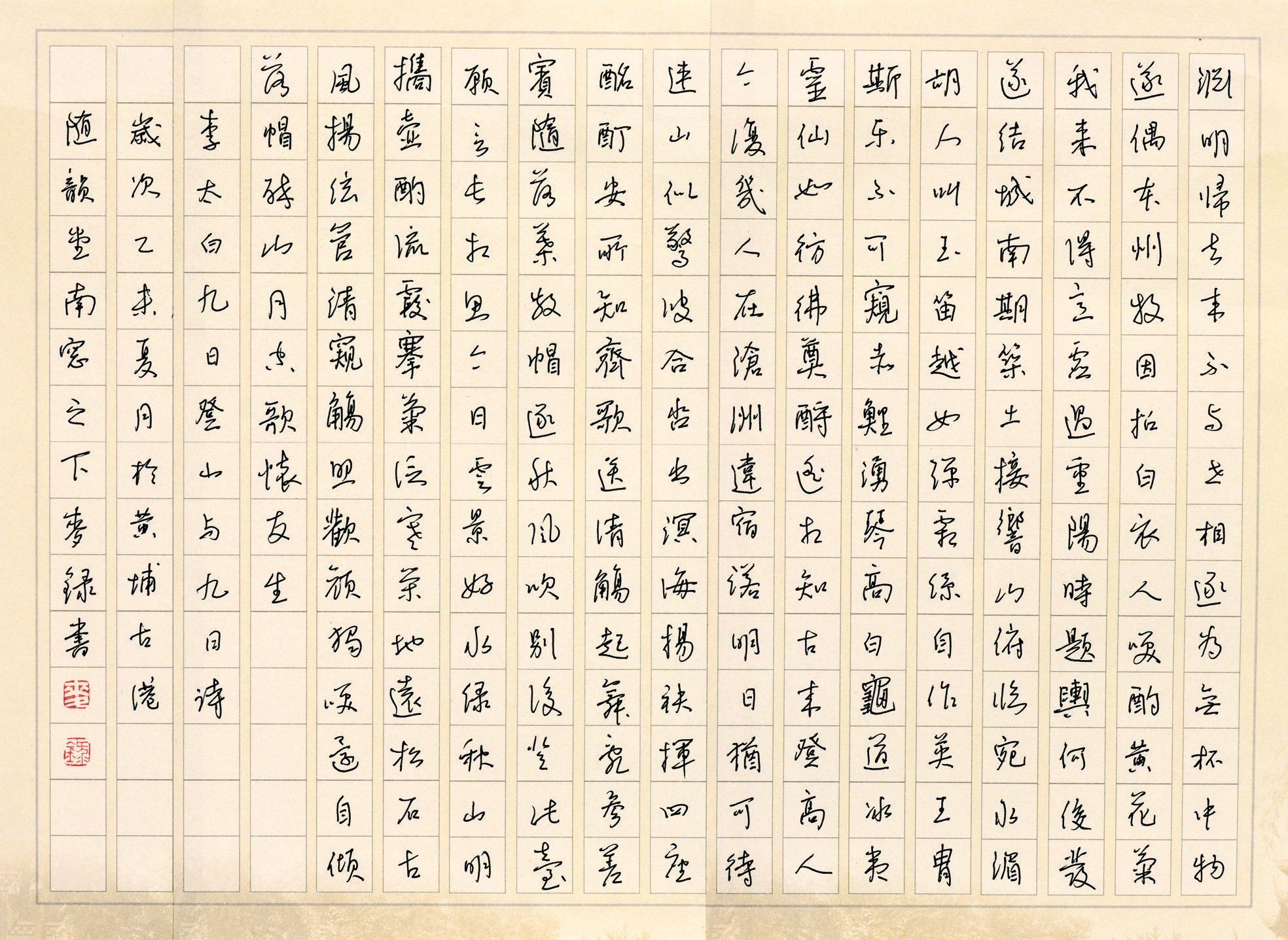 2015年麦录硬笔书李白诗