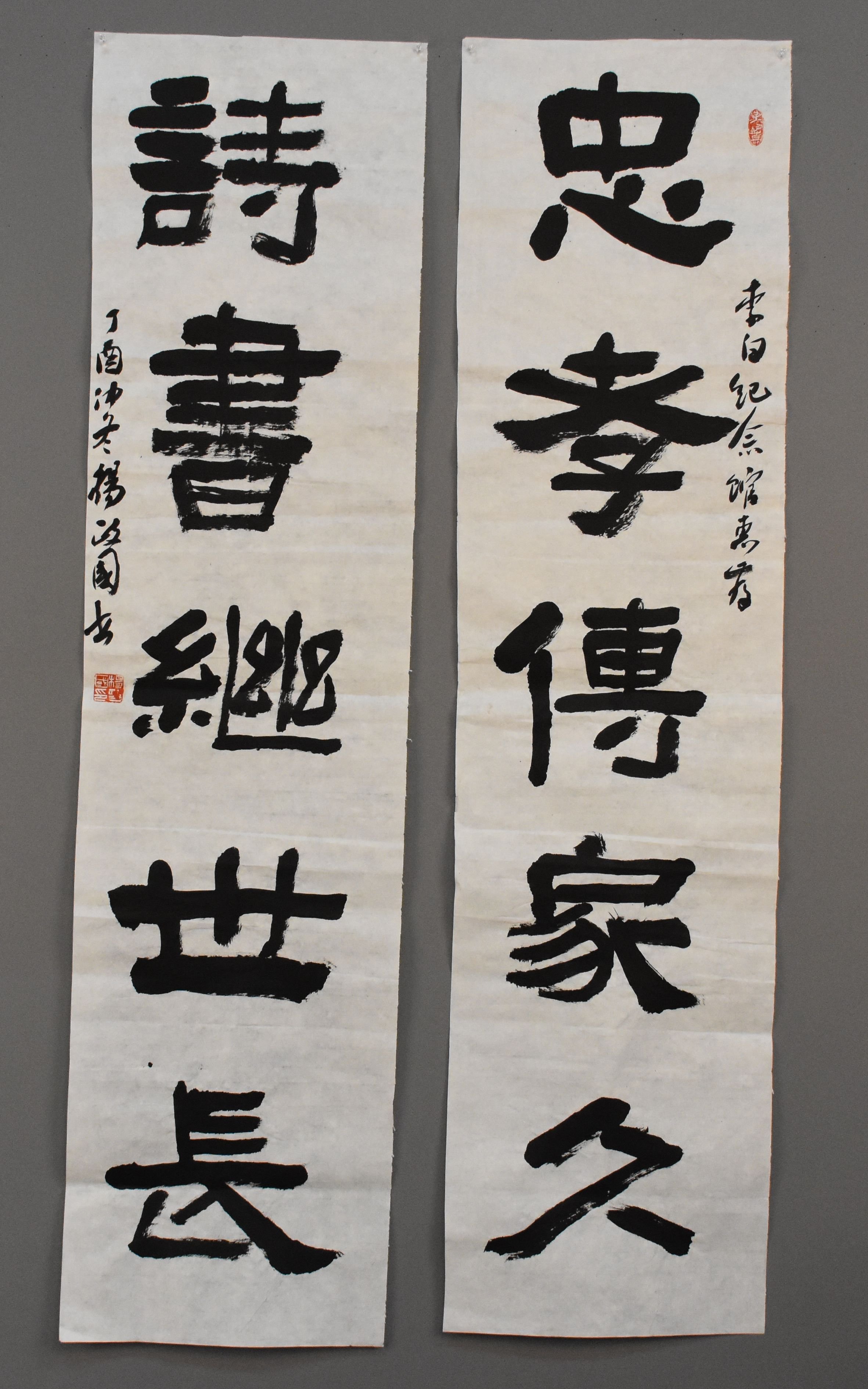 2018杨政国行书《忠孝.诗书》联