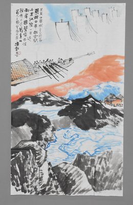 2015年邓文华李白诗意《早发白帝城》条幅