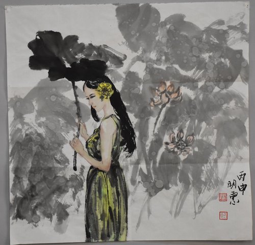 2016邝明惠绘画《荷花仕女》斗方