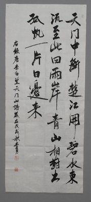 李勇行书《望天门山》条幅