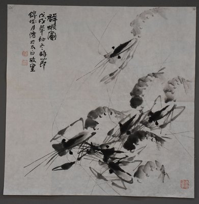 2018罗月仙绘画《群虾图》斗方