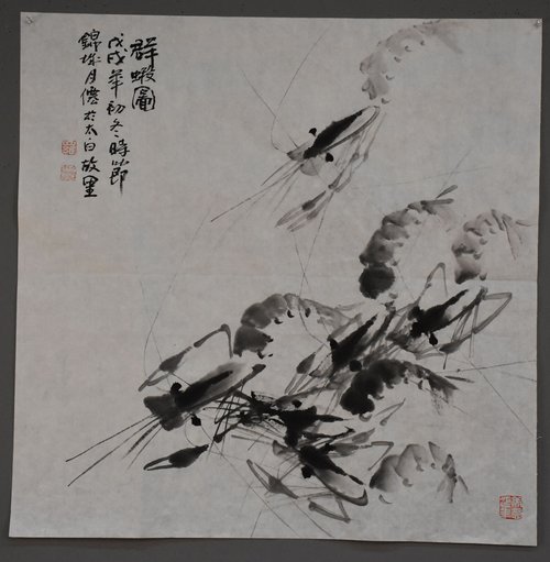 罗月仙绘画《群虾图》斗方