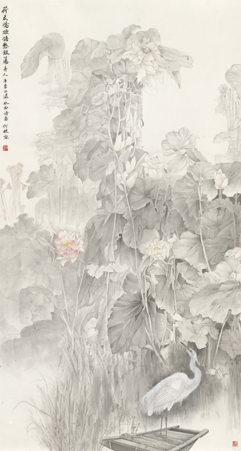 2025年何根荣绘画《荷花娇欲语》